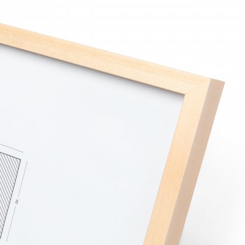 Our G1L removable frame exercises restraint. With a simple and slim profile strip made of European hardwood, it creates a very elegant frame for your works. The precise and solid production underlines the modest character. By using normal glass (float glass), we can offer the G1L very affordably.